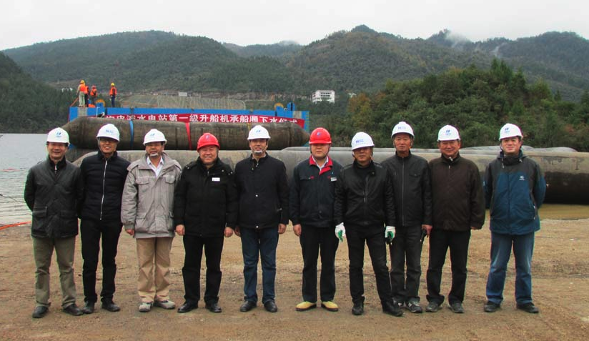 華新機(jī)電國(guó)內(nèi)首次實(shí)施升船機(jī)承船廂氣囊整體移運(yùn)入水和船舶拖帶浮運(yùn)進(jìn)入船廂室