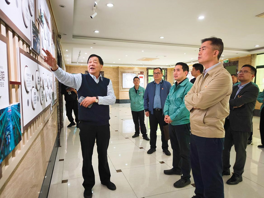 【振興阿祥集團(tuán)黨委書記、董事長潘阿祥為黃生湘一行介紹企業(yè)情況】