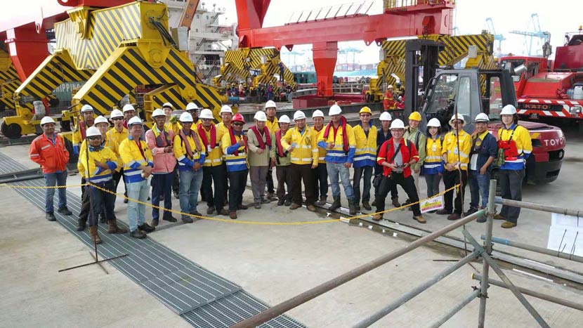 華新機電產(chǎn)品替代德國制造扎根馬來西亞市場,充分展示了公司產(chǎn)品的實力和市場優(yōu)勢。目前,公司三臺卸船機雄駐柔佛海峽的咽喉口,為中國產(chǎn)品“一帶一路”提供智能制造、揚名海外市場貢獻(xiàn)了華新機電人的智慧。2400tph抓斗卸船機項目執(zhí)行團隊所有成員相互積極配合、精誠團結(jié)、辛勤工作,與業(yè)主和總承包的密切配合以及高質(zhì)量的服務(wù)獲得了業(yè)主與總包單位的肯定與鼓勵,實現(xiàn)了公司與馬來客戶良好合作的傳承。