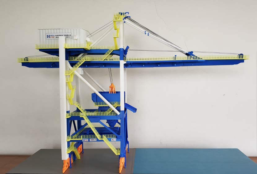 華新機(jī)電自2016年開展產(chǎn)品設(shè)計從傳統(tǒng)CAD二維到全三維化設(shè)計的轉(zhuǎn)換,從而邁入標(biāo)準(zhǔn)化、模塊化乃至智能制造的技術(shù)生態(tài)系統(tǒng)。公司專門成立了 “三維設(shè)計推廣組”,在公司高層的推動和技術(shù)中心同事的積極配合下,已初步實現(xiàn)了公司產(chǎn)品設(shè)計的三維化。結(jié)合項目的實際需求及對設(shè)計三維數(shù)據(jù)延伸的探索,三維設(shè)計推廣組以馬來西亞TJB卸船機(jī)項目三維模型為基礎(chǔ),應(yīng)用3D打印技術(shù),實現(xiàn)了從三維設(shè)計數(shù)據(jù)到1:100卸船機(jī)實體模型的轉(zhuǎn)化。