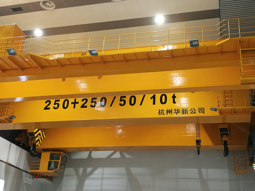 公司設(shè)計(jì)制造的所有橋機(jī)及門(mén)機(jī)的起升小車系消化吸收國(guó)外先進(jìn)技術(shù),結(jié)合我國(guó)當(dāng)時(shí)的配套水平,綜合研究院多年的技術(shù)研制經(jīng)驗(yàn),遵照GB/T3811-2008《起重機(jī)設(shè)計(jì)規(guī)范》、GB/T14405-2011《通用橋式起重機(jī)》等標(biāo)準(zhǔn),同時(shí)參照國(guó)外有關(guān)起重機(jī)標(biāo)準(zhǔn)及歐洲搬運(yùn)協(xié)會(huì)主流橋式起重機(jī)機(jī)型研制而成,節(jié)能減排,經(jīng)濟(jì)環(huán)保,特別適合地下廠房、新型工廠及大噸位貴重物件的吊裝、搬運(yùn)就位工作。公司首臺(tái)臺(tái)橋機(jī)為1990年研發(fā)、1992年投入生產(chǎn)的寧波北侖電廠80/20t橋式起重機(jī),公司首臺(tái)臺(tái)門(mén)機(jī)為1994年向富春江發(fā)電廠提供的2×20t尾水門(mén)機(jī)。近三十年的發(fā)展,已向國(guó)內(nèi)外眾多優(yōu)質(zhì)客戶提供千余臺(tái)橋機(jī)和門(mén)機(jī)設(shè)備,是目前業(yè)內(nèi)最先進(jìn)、最成熟的低凈空小車結(jié)構(gòu)。目前制造過(guò)的單小車橋機(jī)最大額定起重量為800t,雙小車橋機(jī)最大額定起重量為500t+500t,具備1500噸橋機(jī)的設(shè)計(jì)制造能力;制造過(guò)的門(mén)式起重機(jī)最大額定起重量為900t的造船龍門(mén)吊。